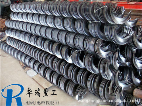 连续螺旋叶片的加工方法有几种,不同的方法用不同的设备来实现。根据连续螺旋叶片的厚度和宽度,大致可分为三种加工方法,厚度大于8mm小于20mm的钢带,可以选用热轧的方式进行轧制,将钢带用高频加热炉加热到一定温度,进入螺旋叶片轧机进行轧制,最终可得到连续螺旋叶片。厚度在2.5-8mm的连续螺旋叶片,可以选用连续螺旋叶片冷轧机进行轧机,这种设备使用广泛,加工规格多样性,轧制成品尺寸标准,外观优美。还有一种小型的连续螺旋叶片设备,利用特殊的模具可以把宽度较小的钢带缠绕在轴上,行程连续的螺旋叶片,也称之为缠绕型螺旋叶片设备。